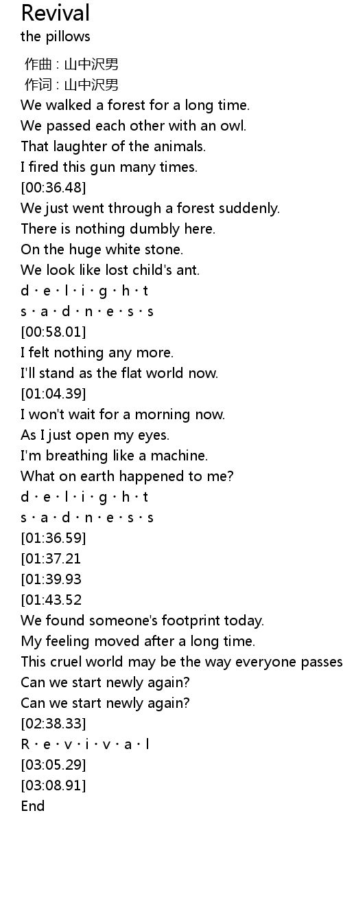 | [02:04.93][01:37.21] | I felt nothing any more. |