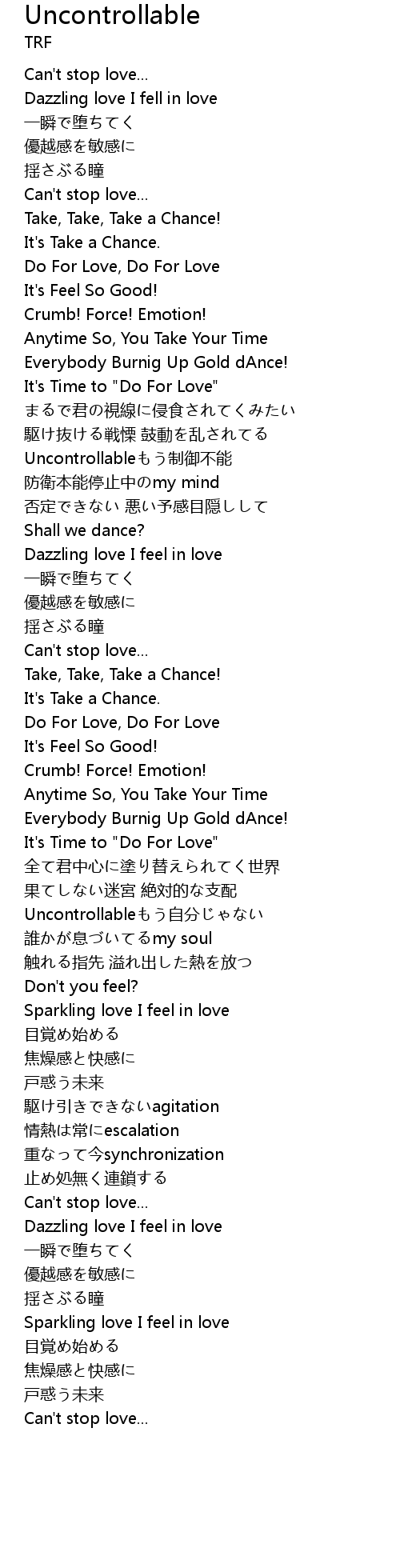 | Uncontrollableもう制御不能 | |