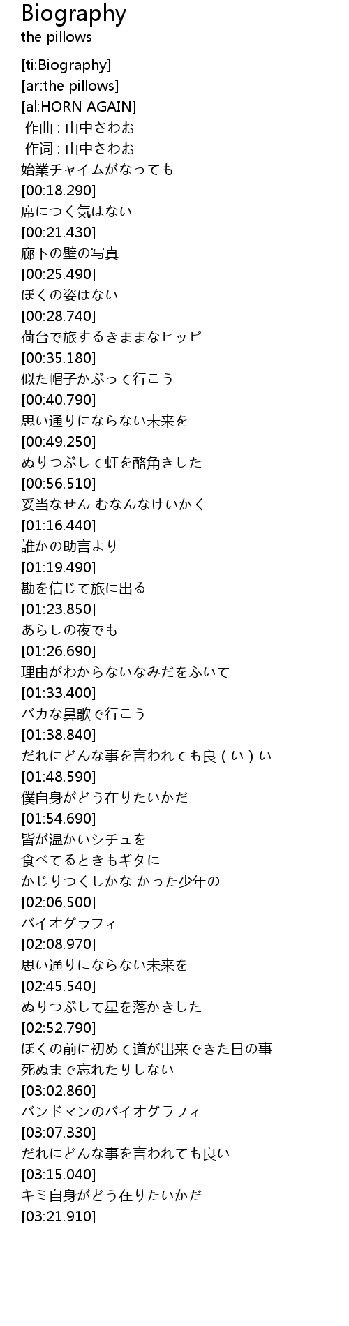 | [03:03.630] | バンドマンのバイオグラフィ |