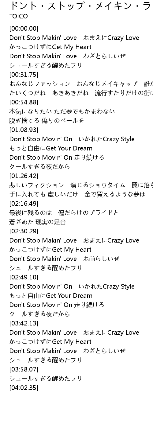 | [03:42.60] | Don't Stop Makin' Love おまえにCrazy Love |