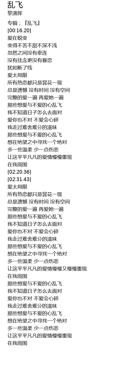 | [00:11.98] | 专辑;『乱飞』 |