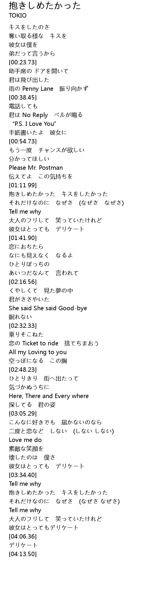 | [03:36.86] | 抱きしめたかった キスをしたかった |