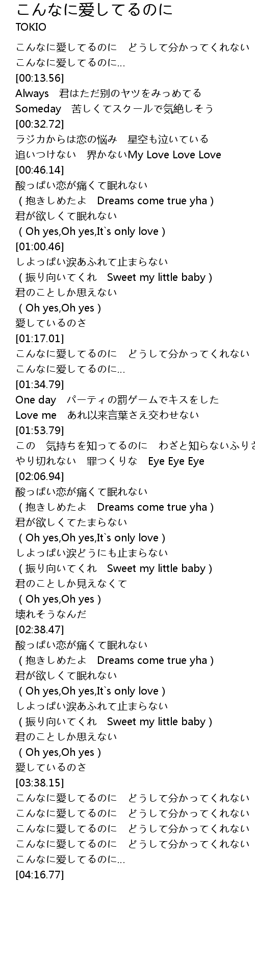 | [00:00.00] | こんなに愛してるのに どうして分かってくれない |