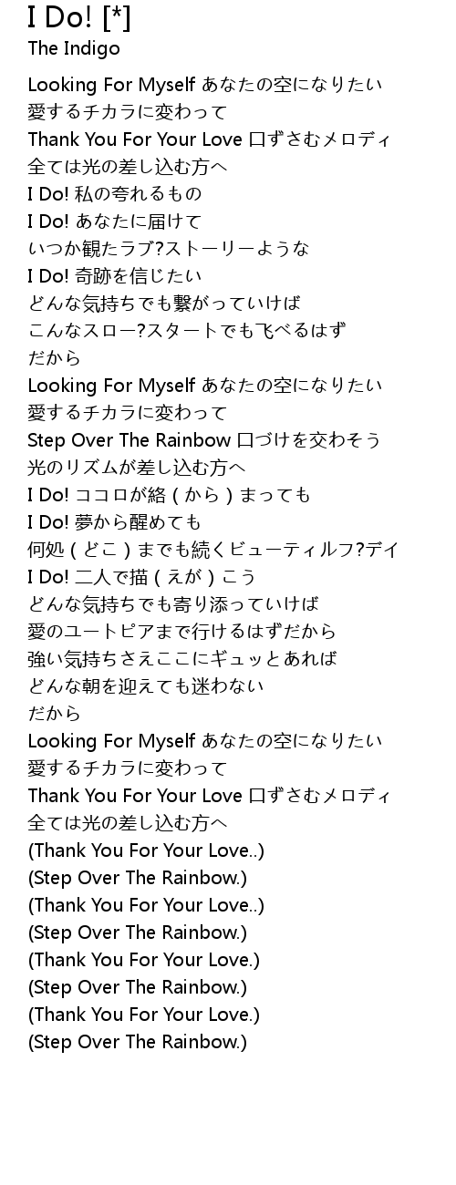 | [00:48.35] | I Do! 奇跡を信じたい |
