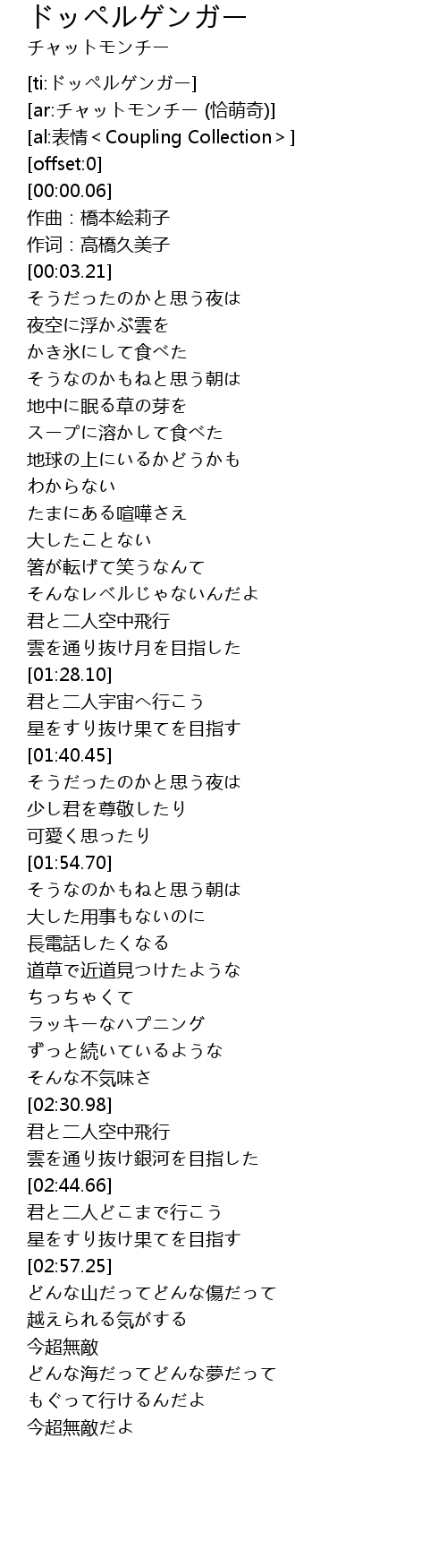 | [01:28.93] | 君と二人宇宙へ行こう |