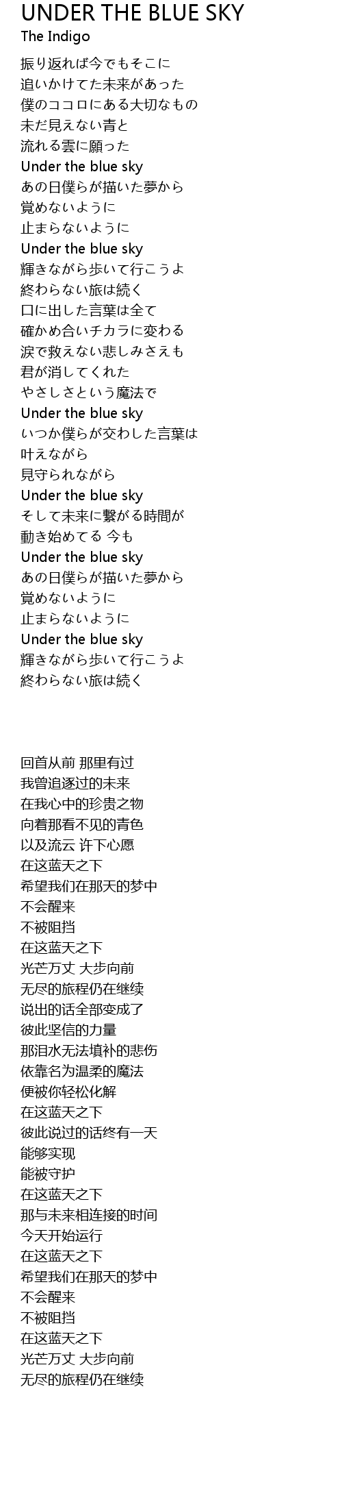 UNDER THE BLUE SKY Lyrics