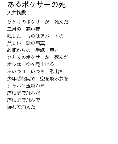 | [00:16.50] | ひとりのボクサーが 死んだ |