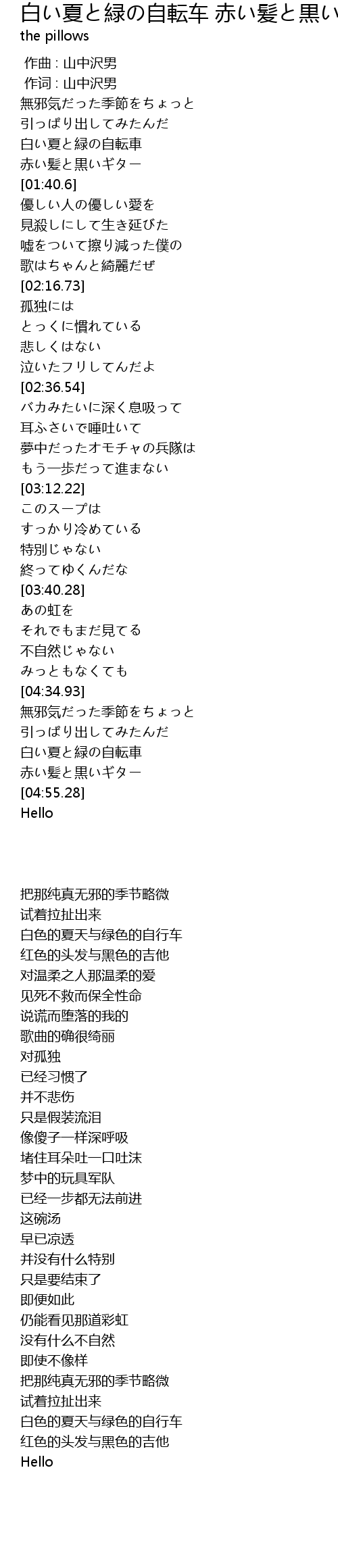 | Song | 白い夏と緑の自転车 赤い髪と黒いギター(display version) |