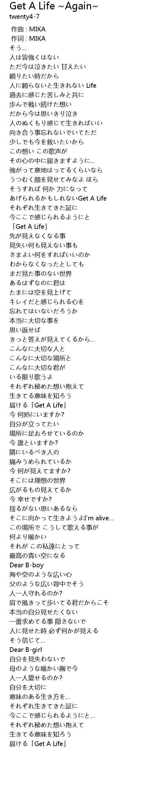 Get A Life ~Again~ Lyrics