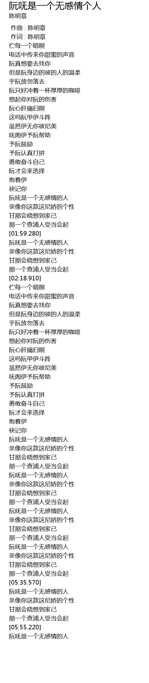 | [05:37.10] | 阮呒是一个无感情的人 |