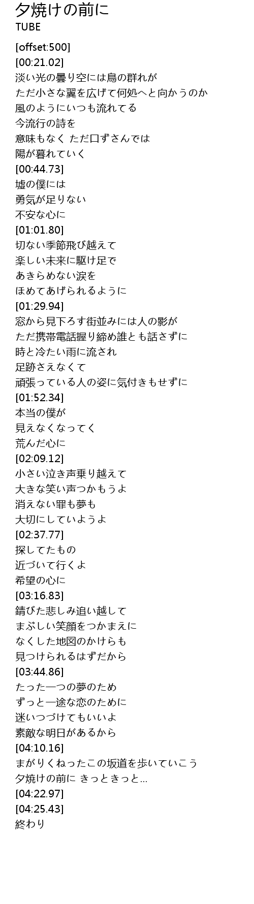 | [04:19.47] | 夕焼けの前に きっときっと... |