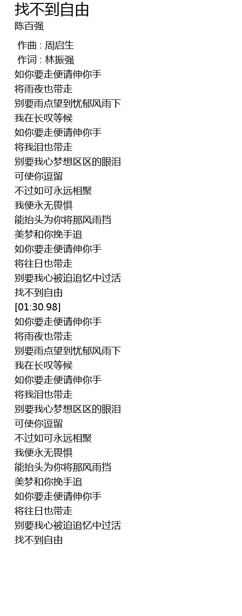 | [01:27.81] | zhǎo bu dào zì yóu |