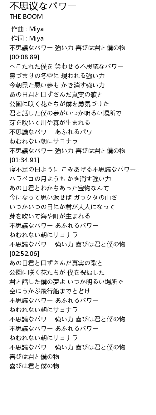 | [03:59.54] | 不思議なパワー あふれるパワー |