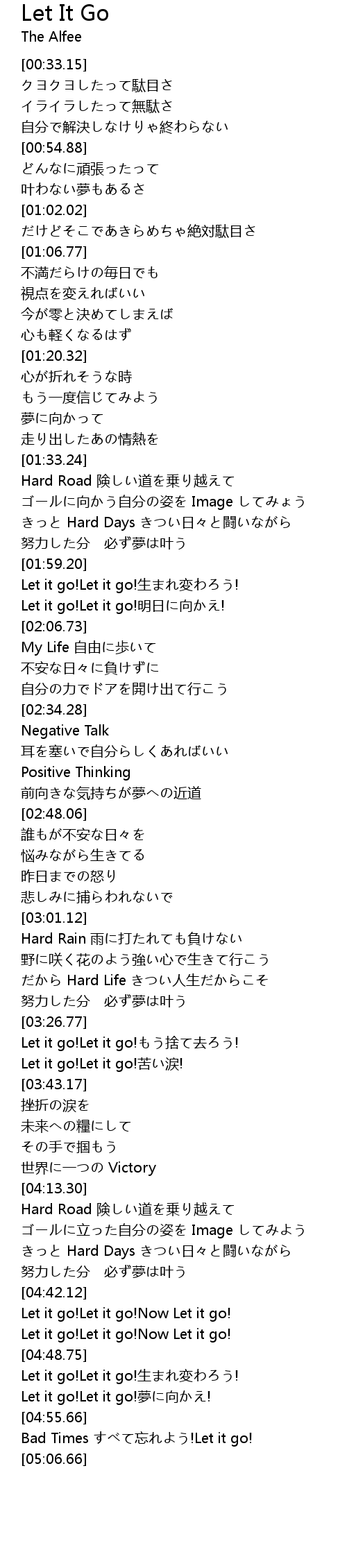 | [02:03.49] | Let it go!Let it go!明日に向かえ! |
