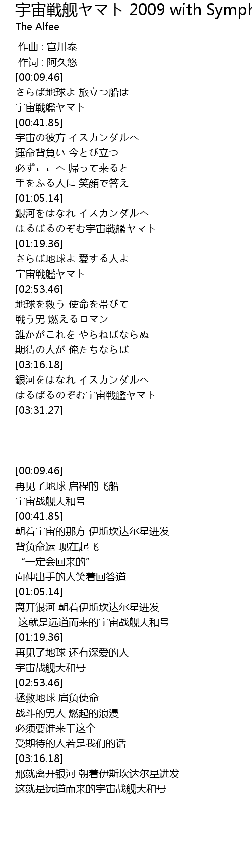| [03:17.43] | 銀河をはなれ イスカンダルへ |