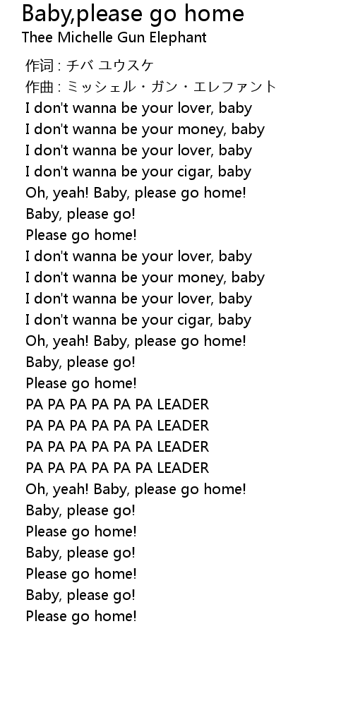 | [00:35.599] | Oh, yeah! Baby, please go home! |