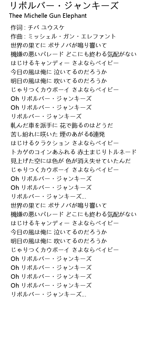 | [00:01.000] | 作曲 : ミッシェル・ガン・エレファント |