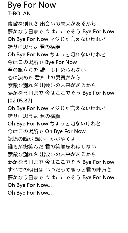 | [02:28.76] | Oh Bye For Now ちょっと切ないけれど |