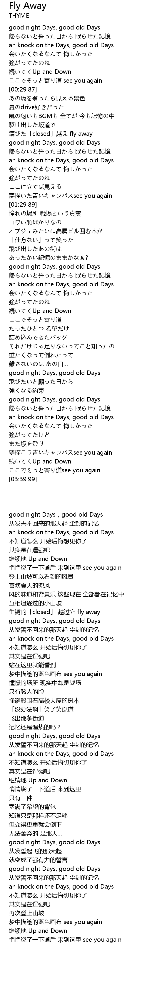 | [00:23.90] | ここでそっと寄り道 see you again |