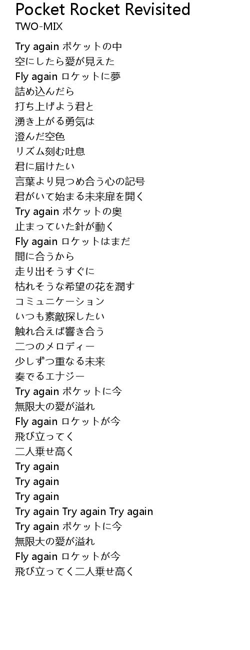 | [04:17] | 飛び立ってく二人乗せ高く |