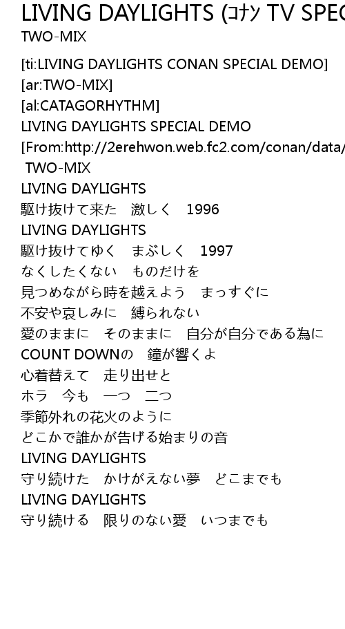| [01:57.17] | LIVING DAYLIGHTS |