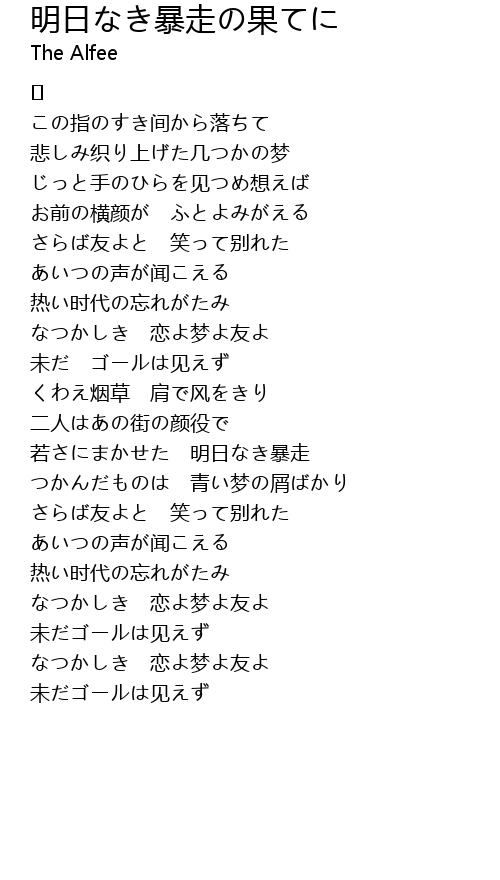 | Song | 明日なき暴走の果てに |
