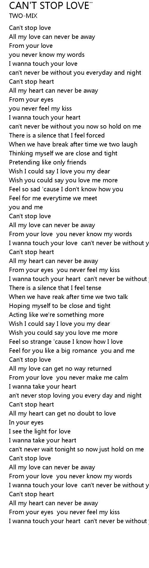 CAN' T STOP LOVE Lyrics