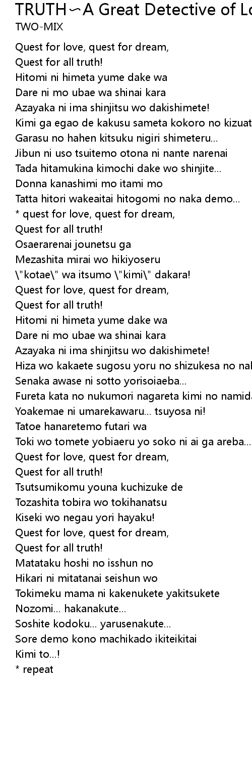 TRUTH〜A Great Detective of Love〜 TRUTH A Great Detective of Love Lyrics
