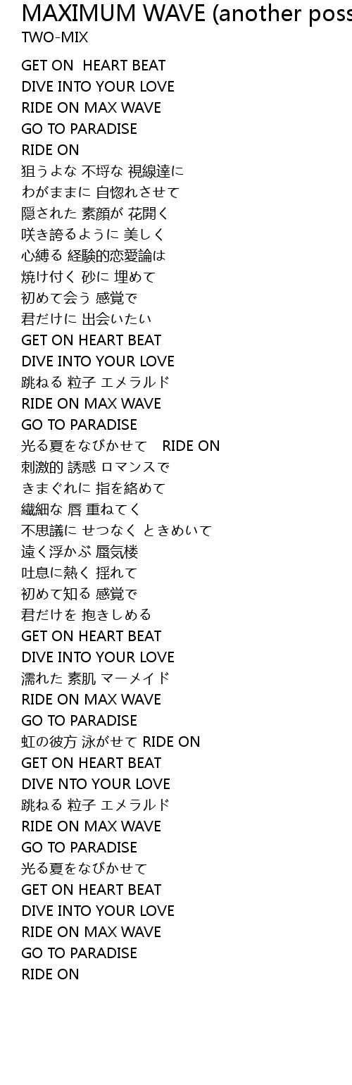 | Song | MAXIMUM WAVE (another possibility) |