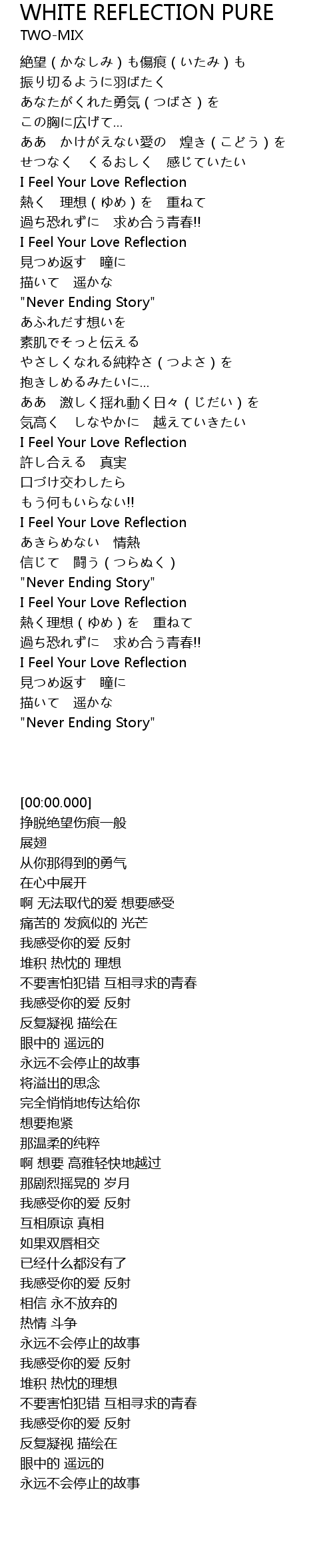 | [00:45.000] | ああ かけがえない愛の 煌き(こどう)を |