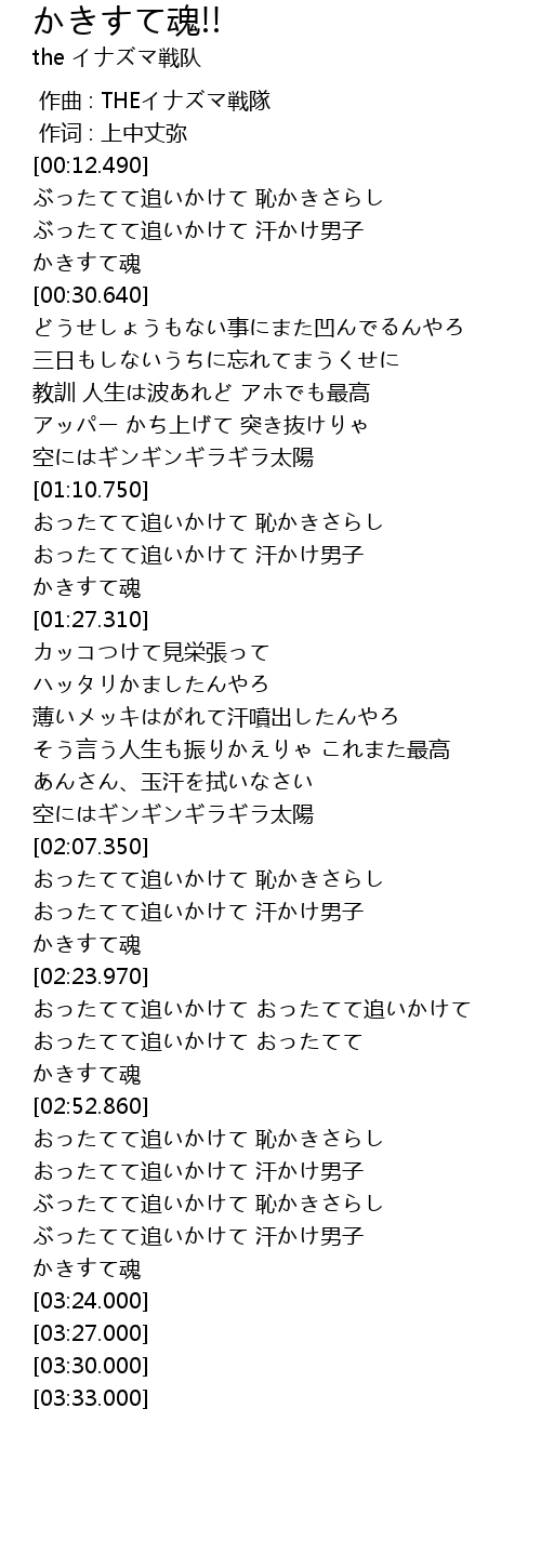 | [03:14.450] | ぶったてて追いかけて 汗かけ男子 |