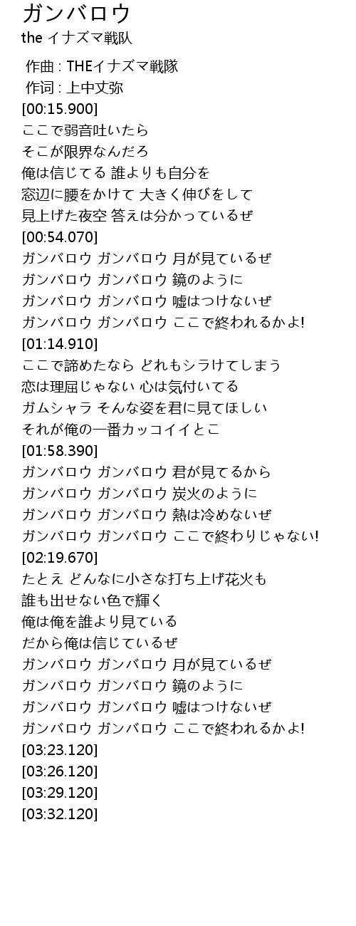 | [03:02.760] | ガンバロウ ガンバロウ 月が見ているぜ |