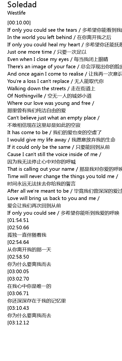 | [02:48.56][01:54.51][00:52.47] | Soledad / 孤独 |