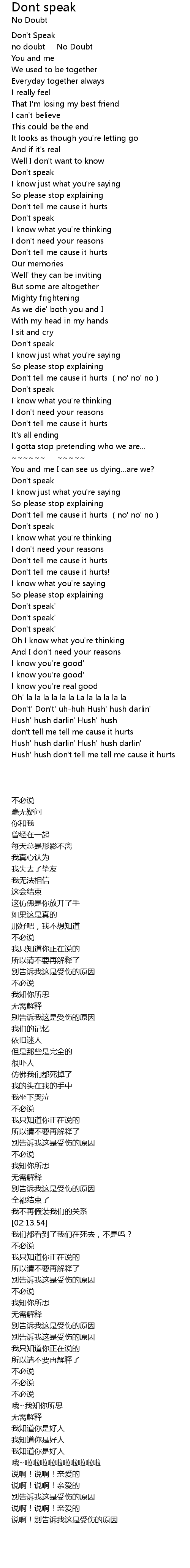 | [02:55.81] | Don't tell me cause it hurts (no' no' no) |