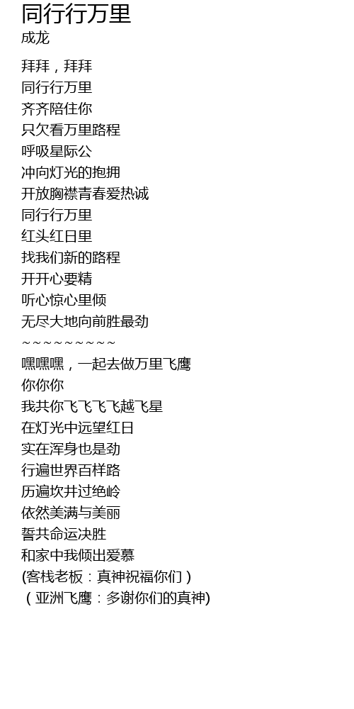 | [00:33.09] | tóng háng xíng wàn lǐ |