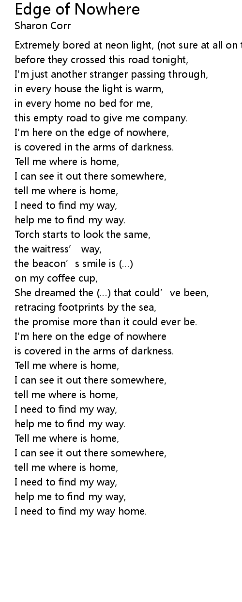 | I' m here on the edge of nowhere | |