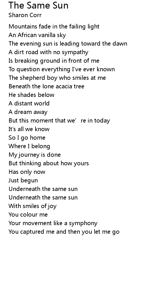 | Song | The Same Sun |