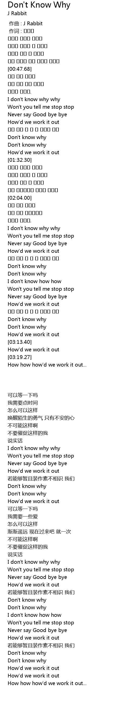 | [03:04.04] | Don' t know why |
