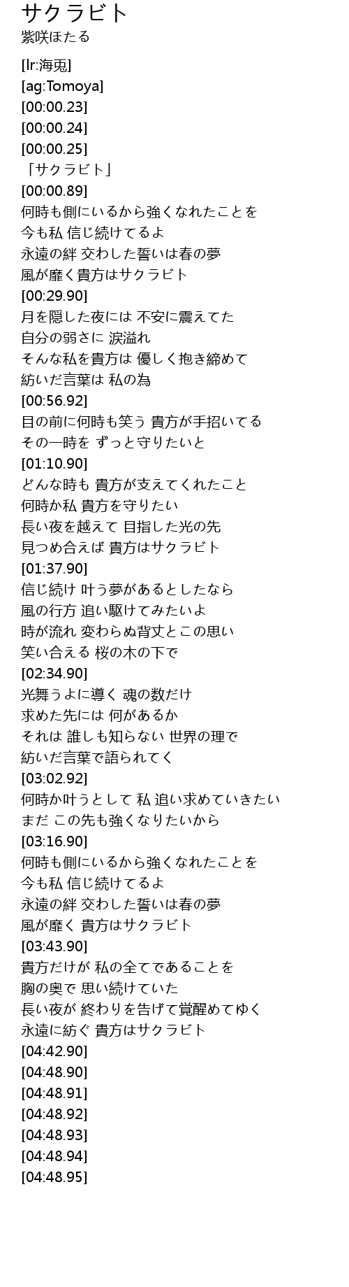 | [04:32.96] | 永遠に紡ぐ 貴方はサクラビト |