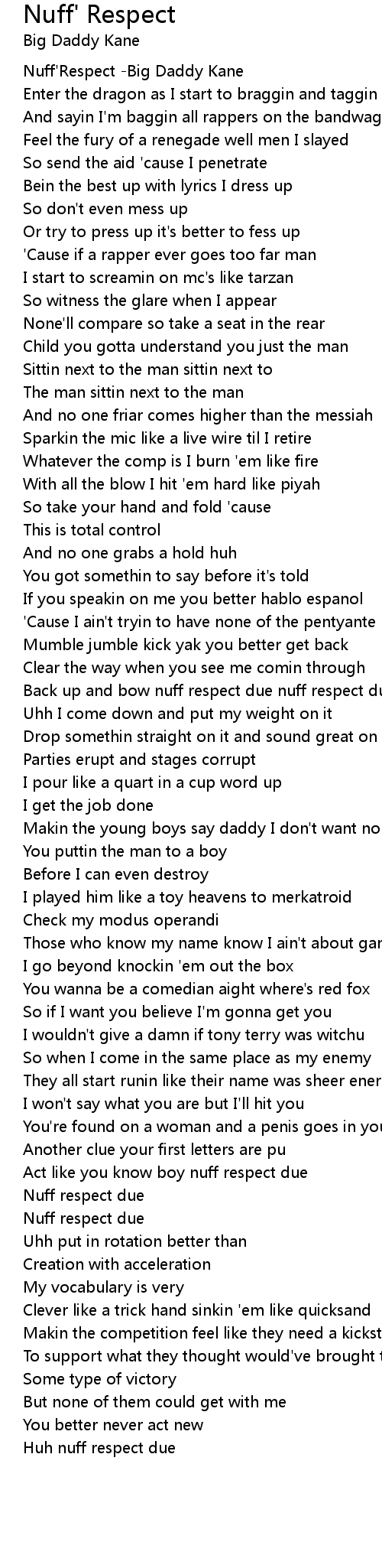 Nuff'Respect -Big Daddy Kane |