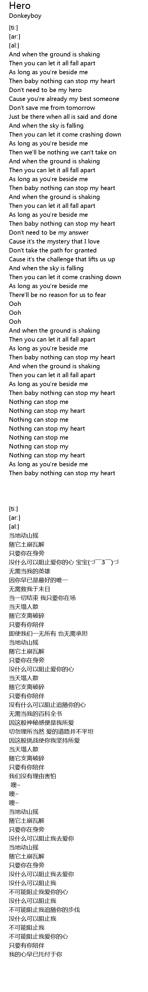 | [02:41.34] | Then baby nothing can stop my heart |