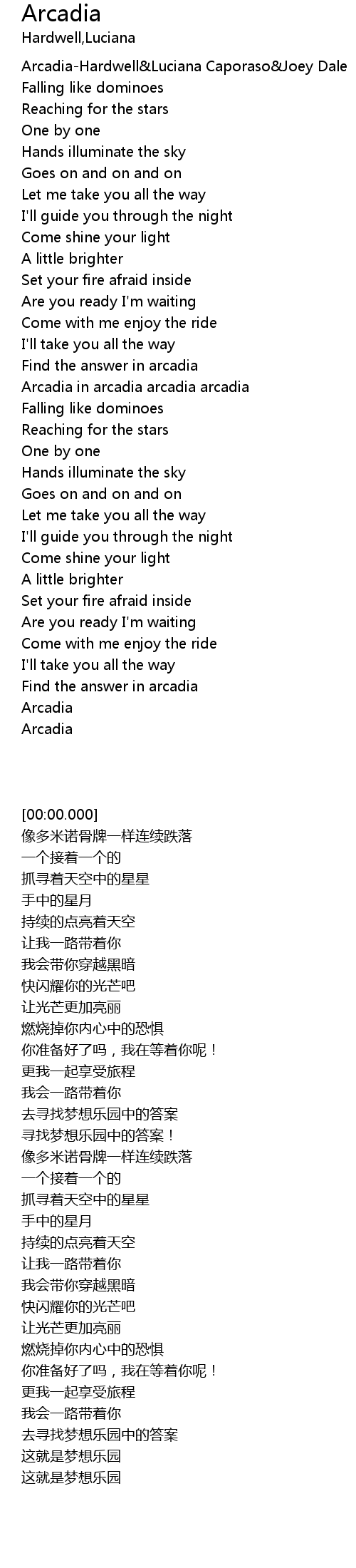 | [00:00.000] | Arcadia-Hardwell&Luciana Caporaso&Joey Dale |