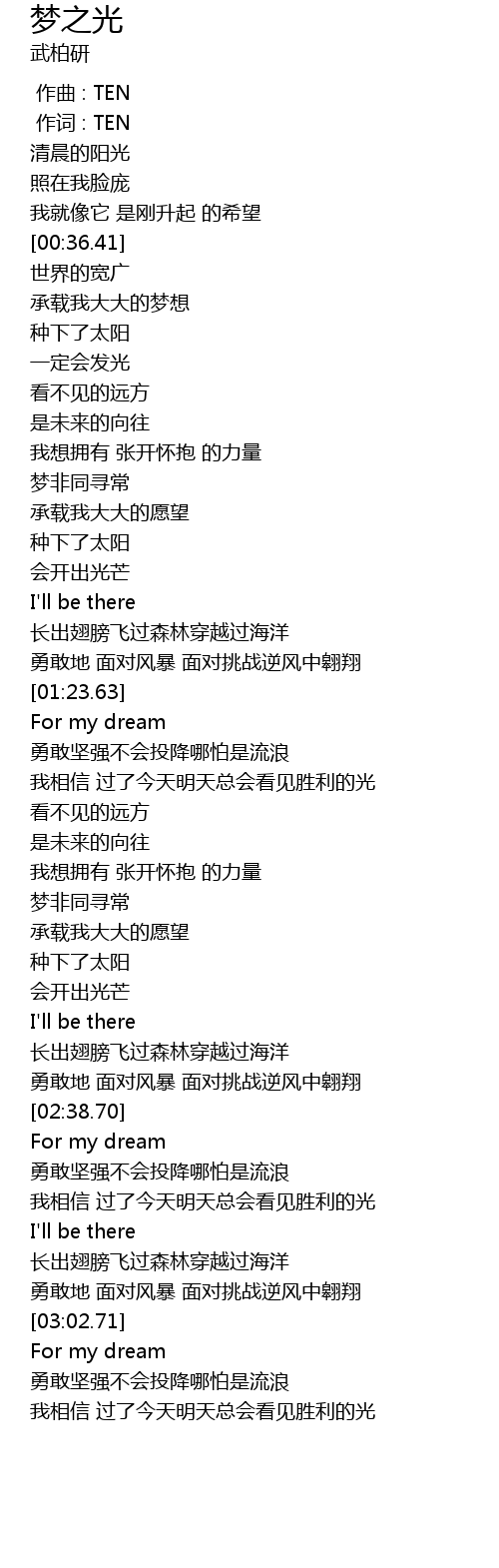 | [03:08.71] | 我相信 过了今天明天总会看见胜利的光 |