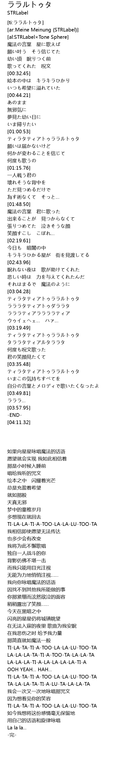 | [03:13.25] | ラララティアララララティア |
