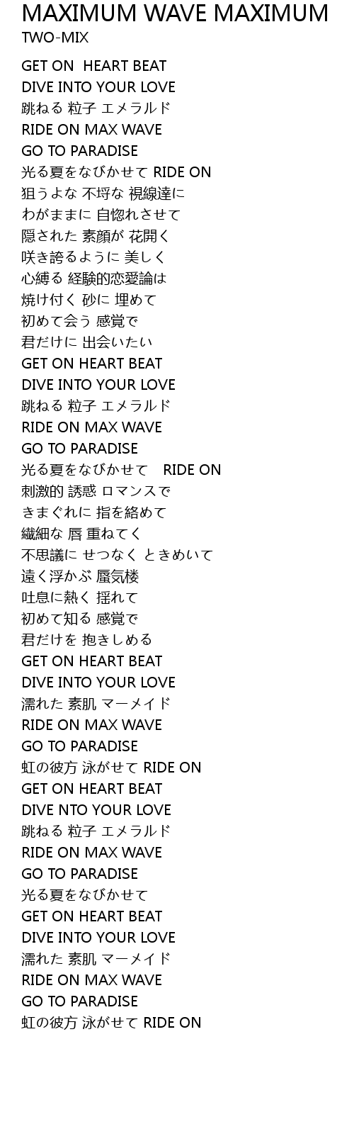 | [01:33] | 光る夏をなびかせて RIDE ON |