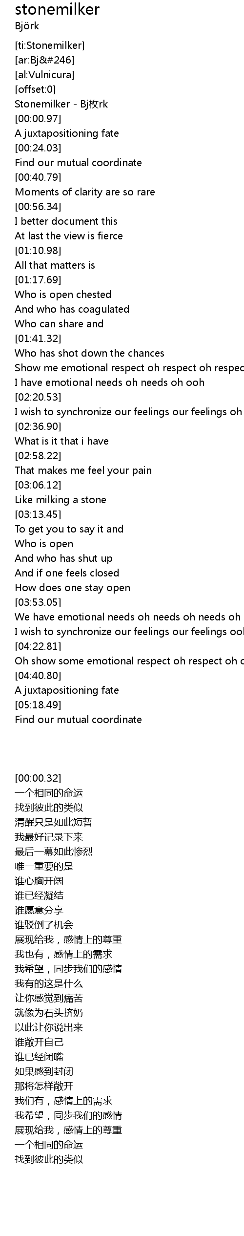 | [00:00.32] | Stonemilker - Bj枚rk |