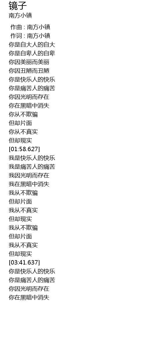 | [00:01.00] | zuò cí : nán fāng xiǎo zhèn |