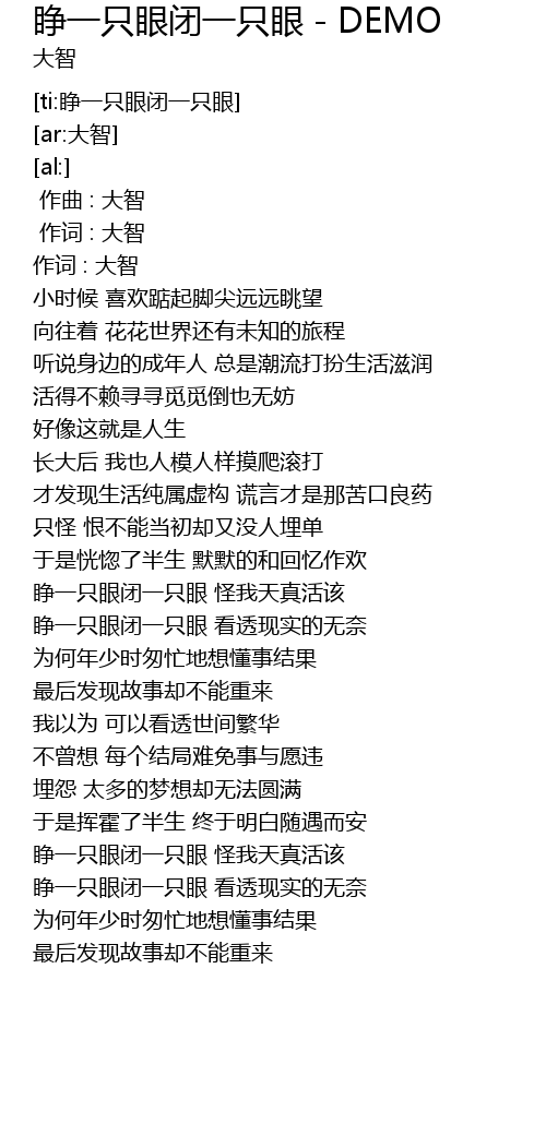 | [02:41.73] | 睁一只眼闭一只眼 看透现实的无奈 |