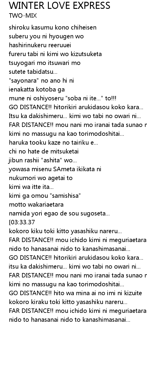 GO DISTANCE!! hitorikiri arukidasou koko kara... |