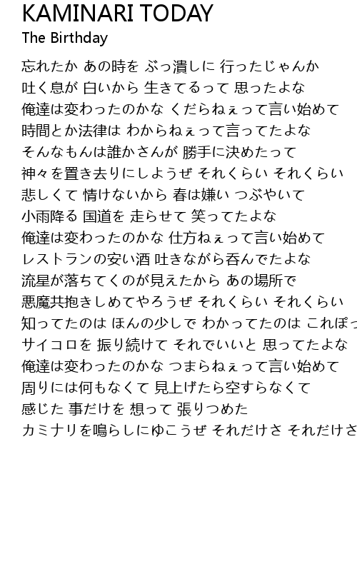 | Song | KAMINARI TODAY |